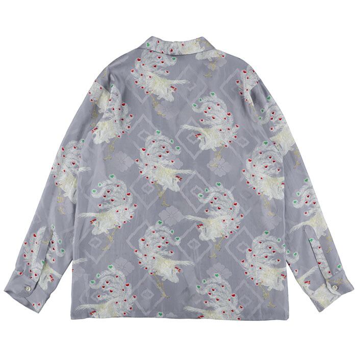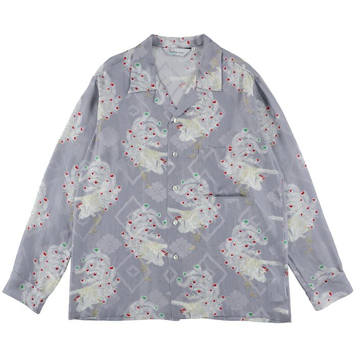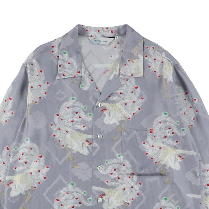 NIPOALOHA ニポアロハ / SILK CUPRO LONG SLEEVE ALOHA SHIRT (PHOENIX x LIGHT PERPLE) [NIPOALOHA-N26-SCLSH04]