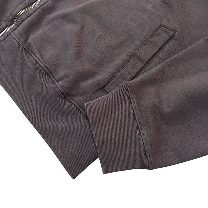 A zip-up hooded sweatshirt in sweatshirt fabric.