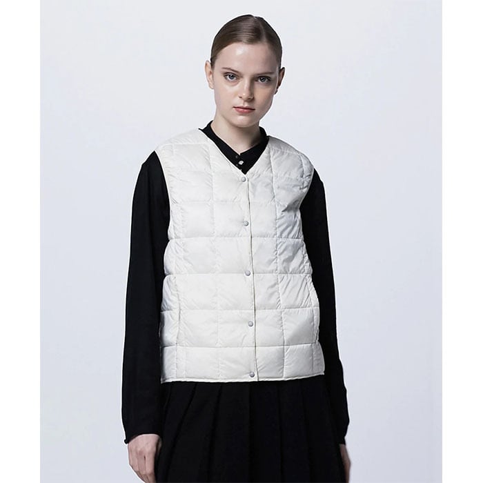 【レディース】TAION タイオン / V ネックボタン インナーダウンベスト (OFF WHITE) [TAION-w001]