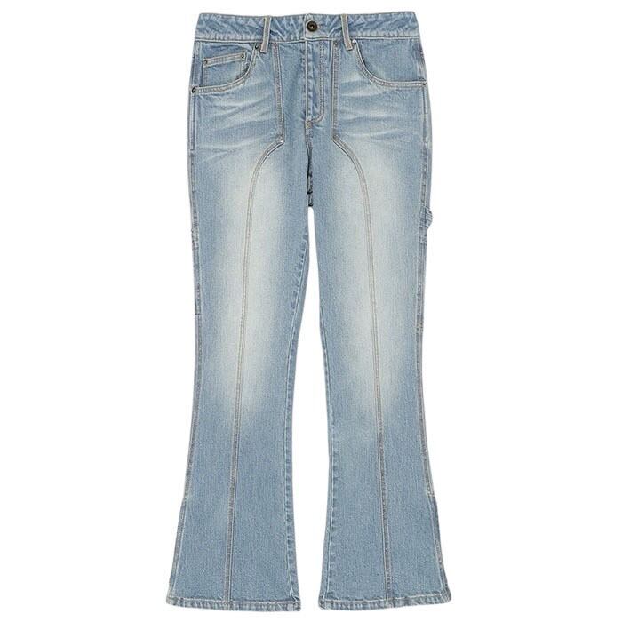 腿から膝にかけてやや細めに設計することで、裾との内周差にメリハリが生まれ、理想的なフレアシルエットを実現。
