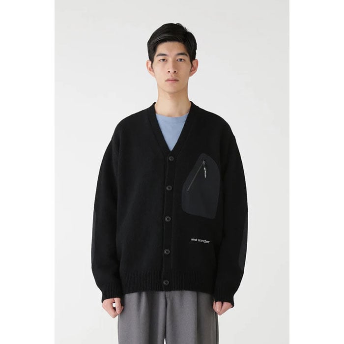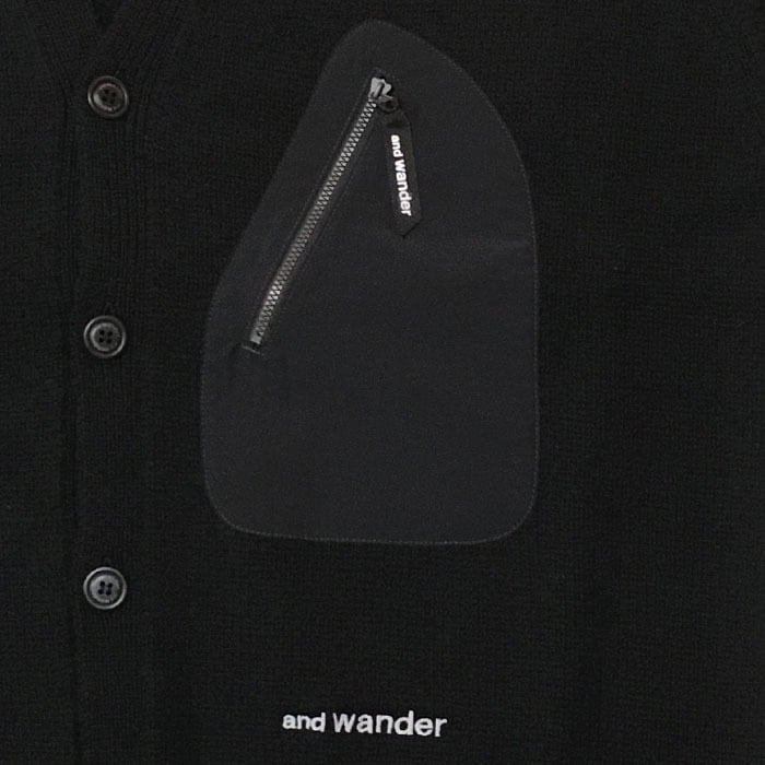 and wander アンドワンダー / Shetland wool cardigan (black) [andwander-5745284068]