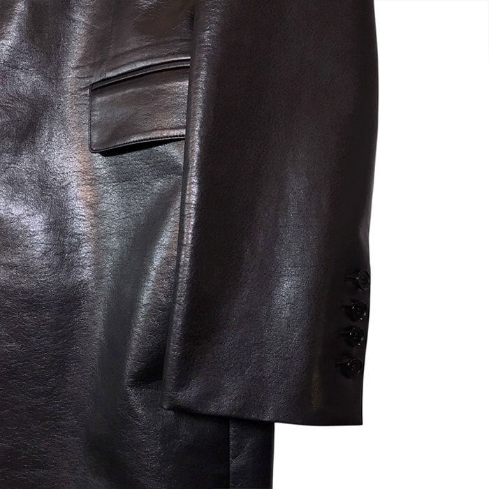 This is a vegan leather single coat by John Lawrence Sullivan.