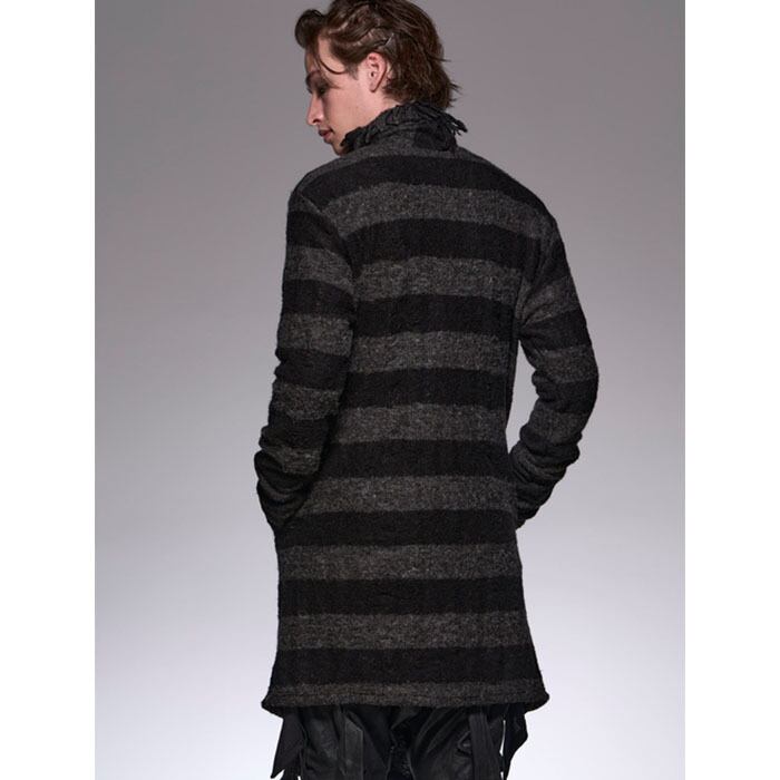kiryuyrik キリュウキリュウ / Damage Border Shawl Cardigan (black x gray) [kiryuyrik-KS-HT08-150]