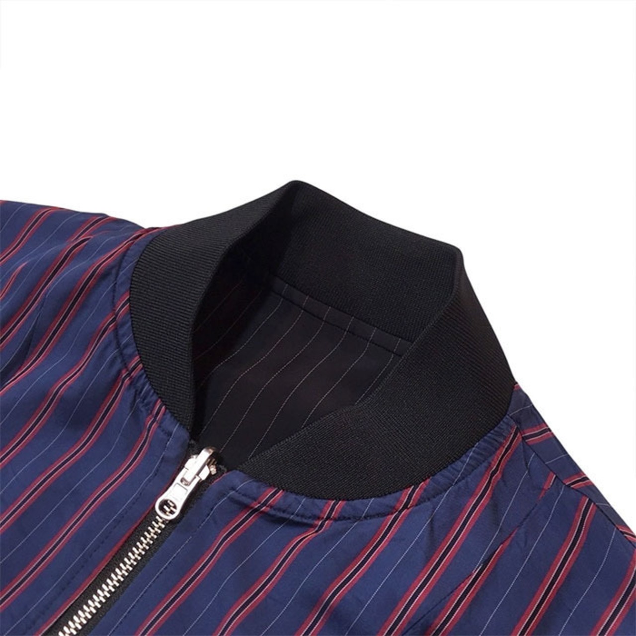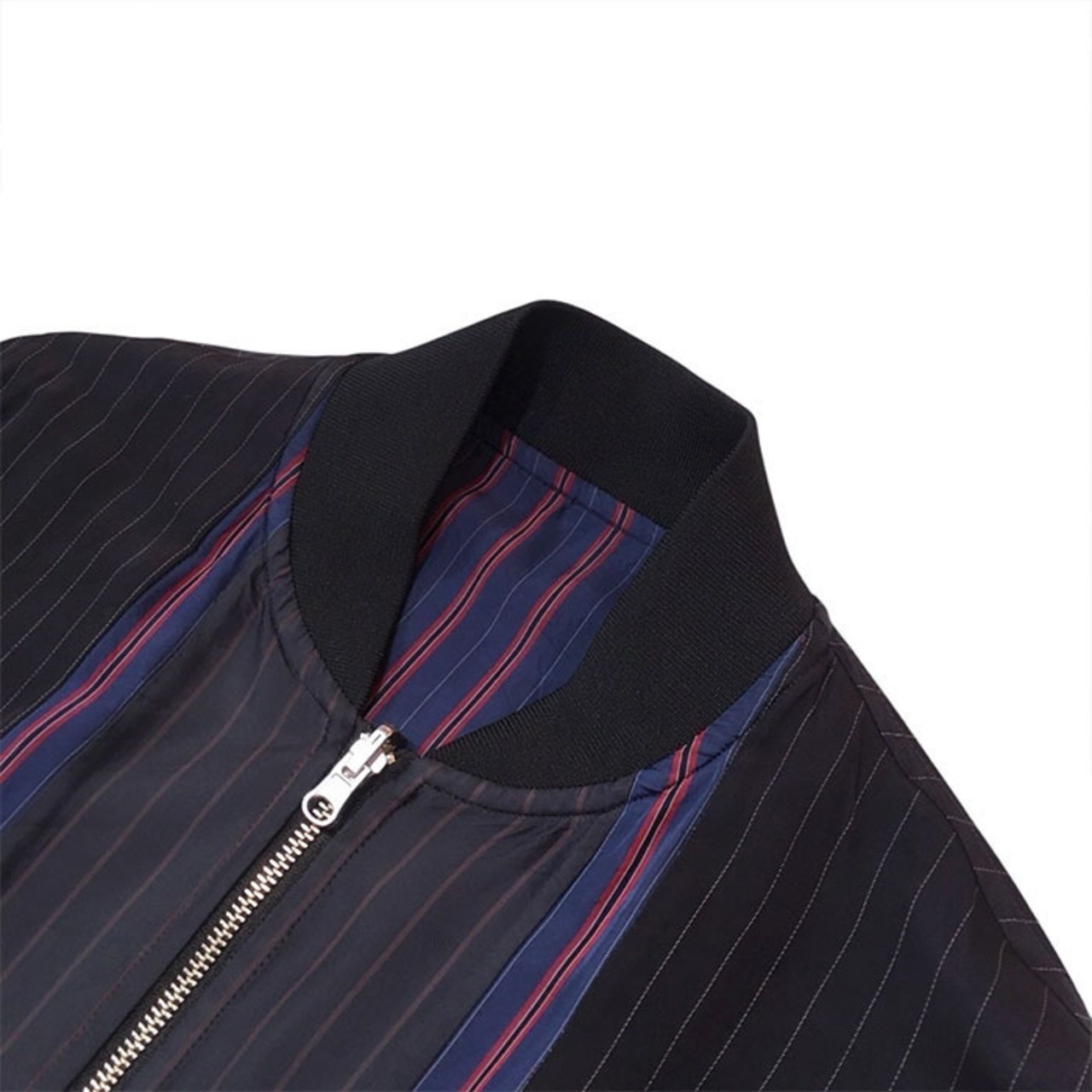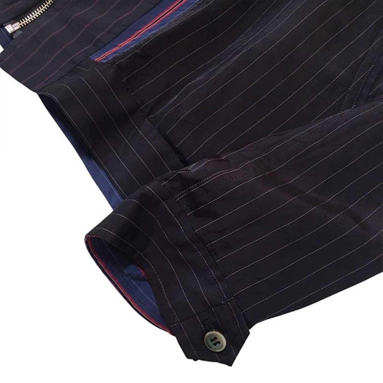 三種の異なるストライプ柄を組み合わせて構築したリバーシブルのジャケット。