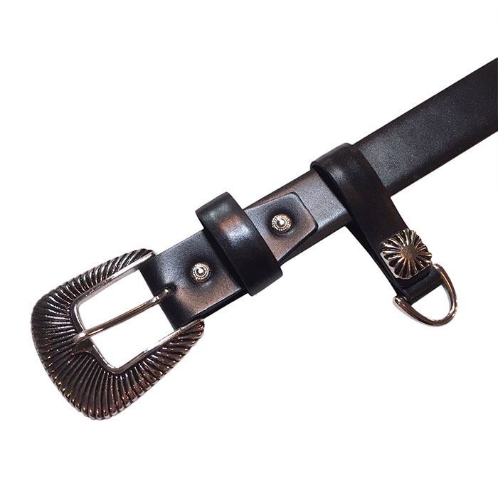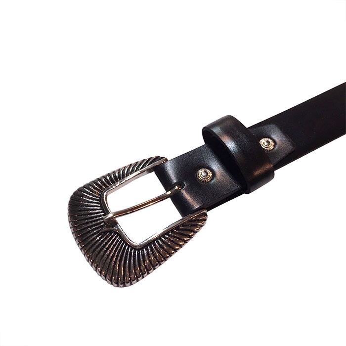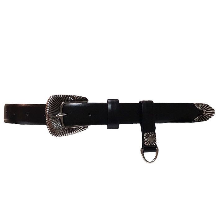 レザーベルトにメタルバックルで装飾を施したベルト。