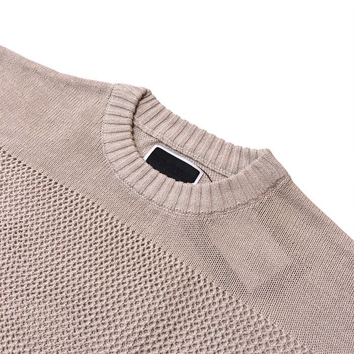 フロントを極端に目抜きで編み上げたシースルーニット。