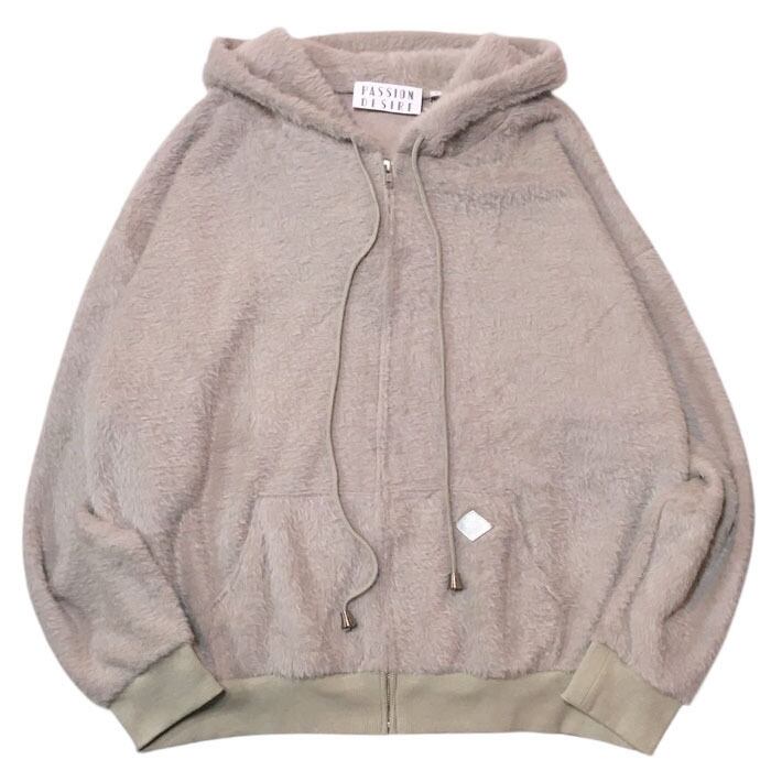 テディベアのぬいぐるみを彷彿とさせるようなフワフワと毛足の長い素材を使用したフーディです。