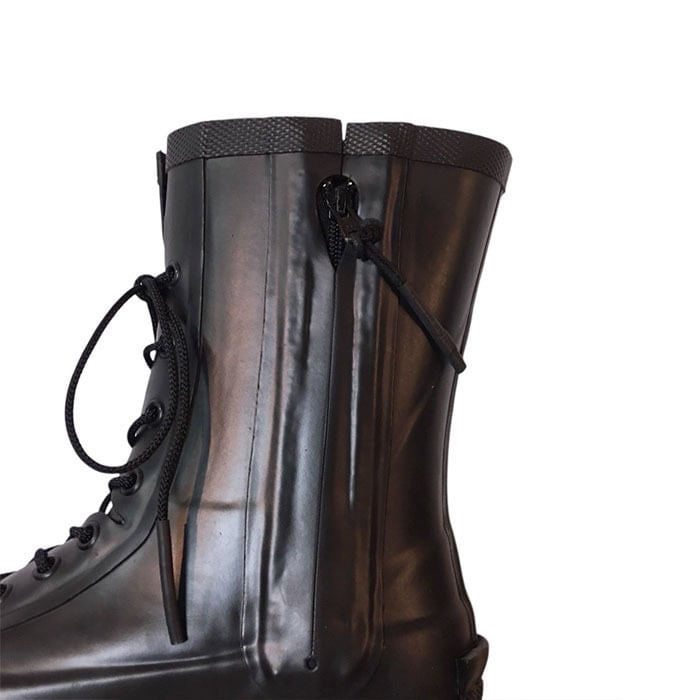 ・ゴム素材の柔軟性とレースアップ仕様でフィット性が高くブーツ
