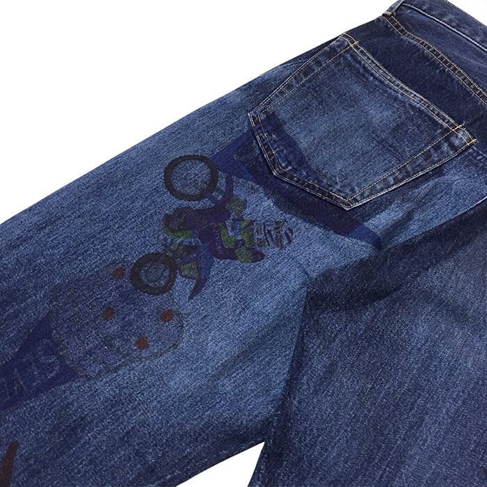 ポップでありながら毒気も感じさせる独自のタッチで、アンダーグラウンドな空気感と、どこかノスタルジックなグラフィティーをデニムに描きました。